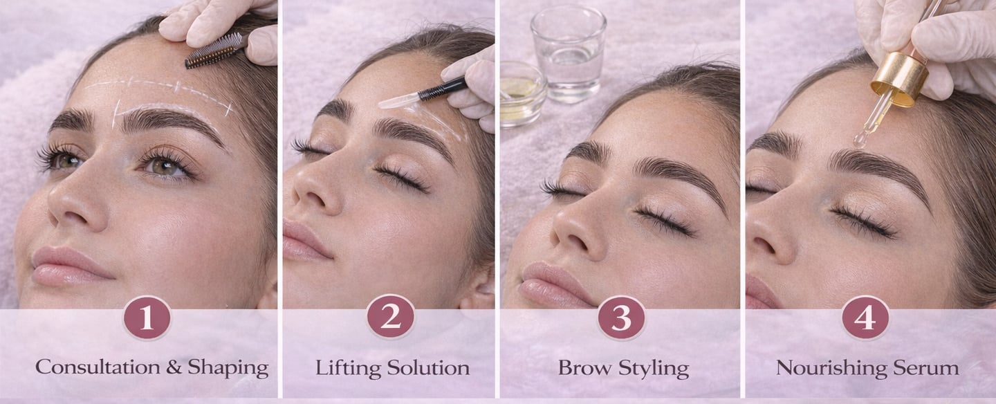 A professional brow lamination appointment typically includes several steps to ensure beautiful results.
