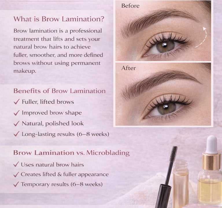 Well-groomed brows can completely transform the way your face looks. One of the most popular treatments for achieving fuller, more defined brows is brow lamination. This professional treatment helps shape, lift, and smooth your natural brow hairs to create a polished and structured look.