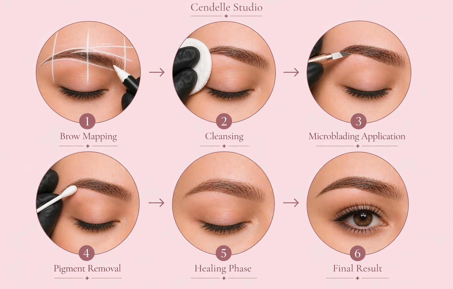 Instead of overfilling or reshaping too aggressively, the process works with your existing brow pattern, adding density where needed, correcting asymmetry, and refining the overall structure.